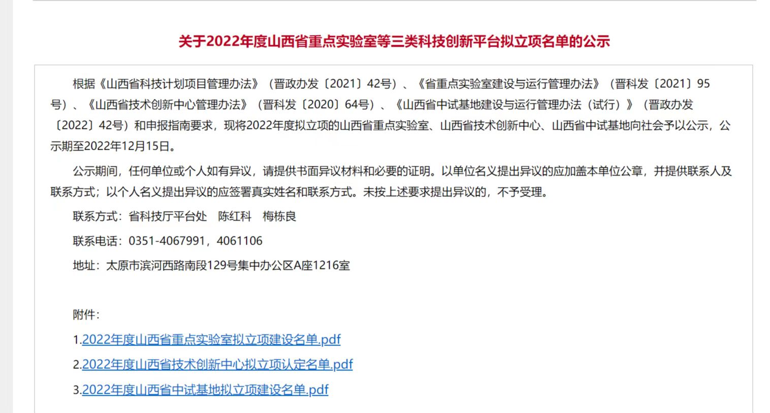 威尼斯官网山西省重点实验室进入拟立项名单公示