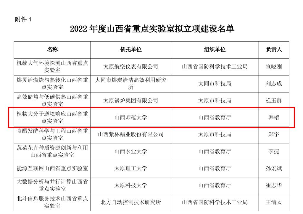 近日,山西省科技厅公示了2022年度山西省重点实验室拟立项名单,依托威尼斯官网生命科学学院韩榕教授的“植物大分子逆境响应山西省重点实验室”进入拟立项建设公示。